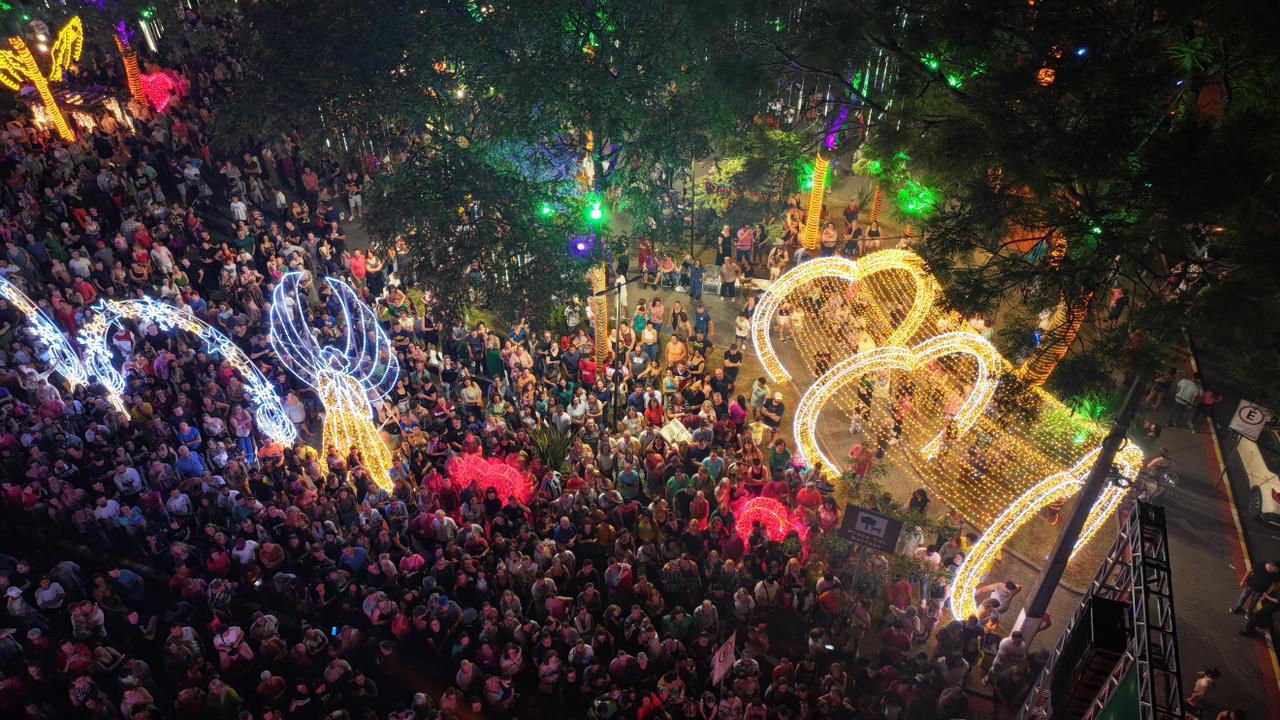 Um show de luzes e decoração na Praça Coronel Bertaso, no museu e na Avenida Getúlio Vargas marcou a abertura do Natal da Família em Chapecó, na noite da última sexta-feira (10).