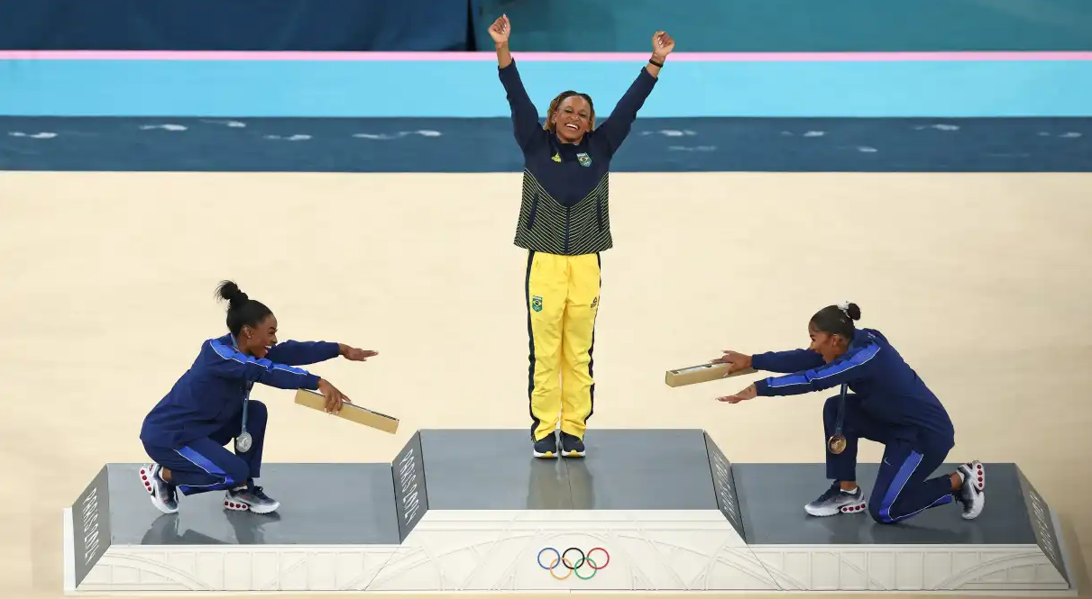 Uma das imagens mais marcantes de Paris 2024 foi a de Simone Biles e Jordan Chiles se curvando para Rebeca Andrade enquanto ela subia ao pódio após conquistar o ouro no solo da ginástica artística. Esse gesto de respeito e humildade ressoou por todo o mundo e resumiu o verdadeiro espírito olímpico e a importância da camaradagem entre atletas.