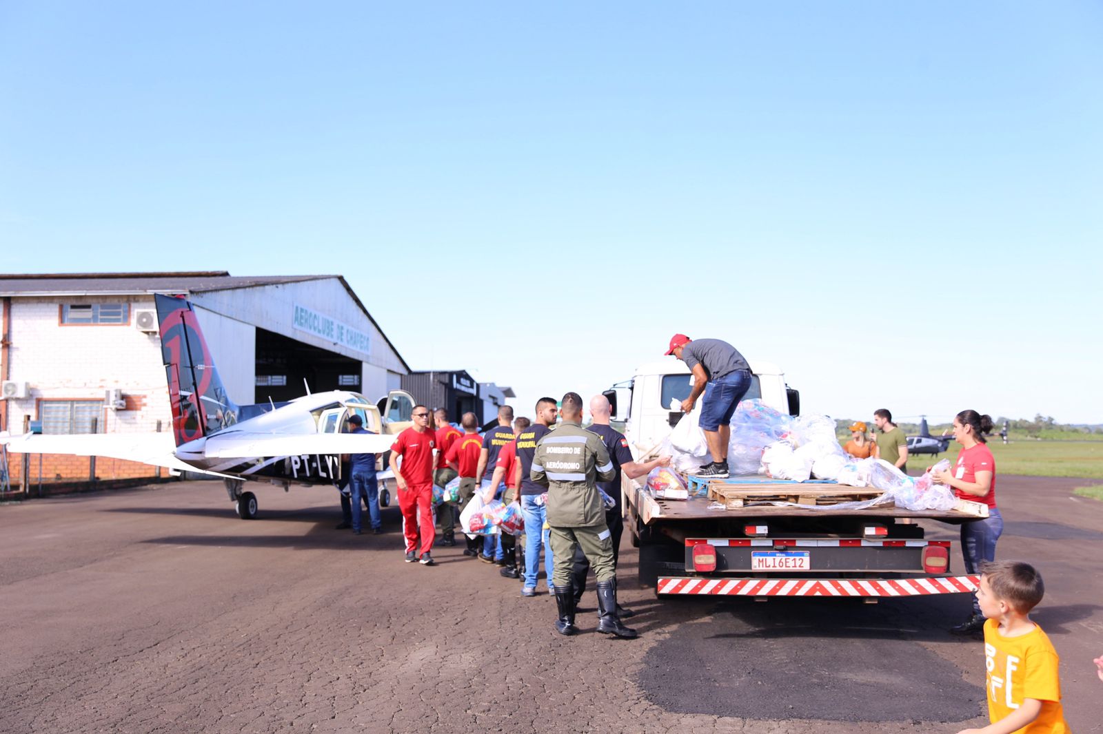 No domingo foram levadas cerca de sete toneladas de donativos para Santa Maria, com oito aeronaves emprestadas por empresários e o Aeroclube de Chapecó, que saíram do aeroporto Serafim Enoss Bertaso e pousaram em Santa Maria. Os donativos foram para municípios da região central do Rio Grande do Sul. Também ontem à tarde saíram dois caminhões com destino a Liberato Salzano e Gramado dos Loureiros.